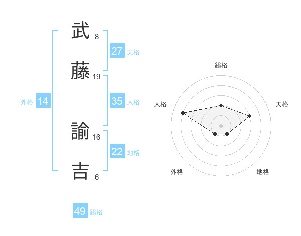 武藤 諭吉さんを姓名の画数から五運を鑑定