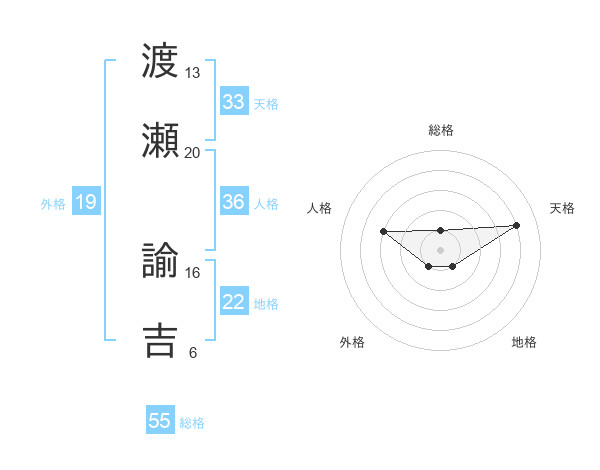 渡瀬 諭吉さんの天格は33画の4点!