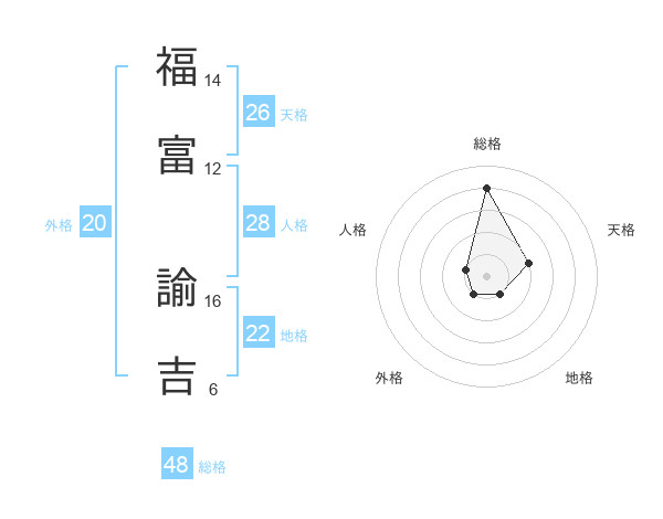 福富 諭吉さんの総格は48画の4点!