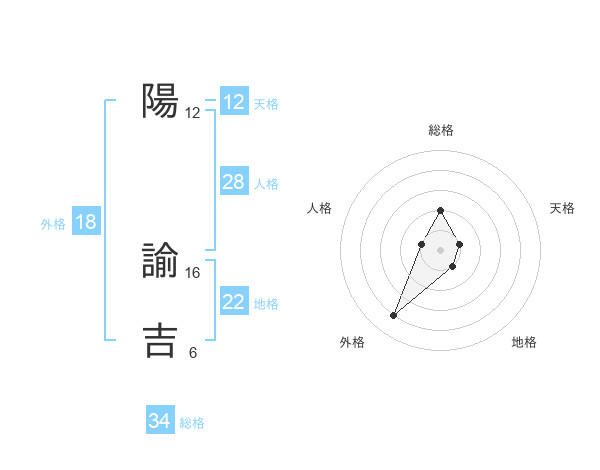 陽 諭吉さんの外格は18画の4点!