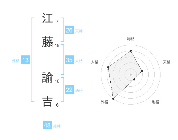 江藤 諭吉さんを姓名の画数から五運を鑑定