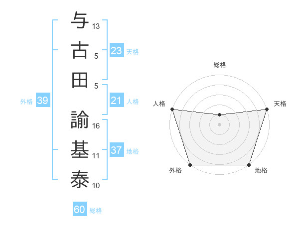 与古田 諭基泰さんの天格は23画の5点!
