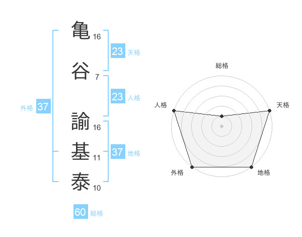 亀谷 諭基泰さんの天格は23画の5点!