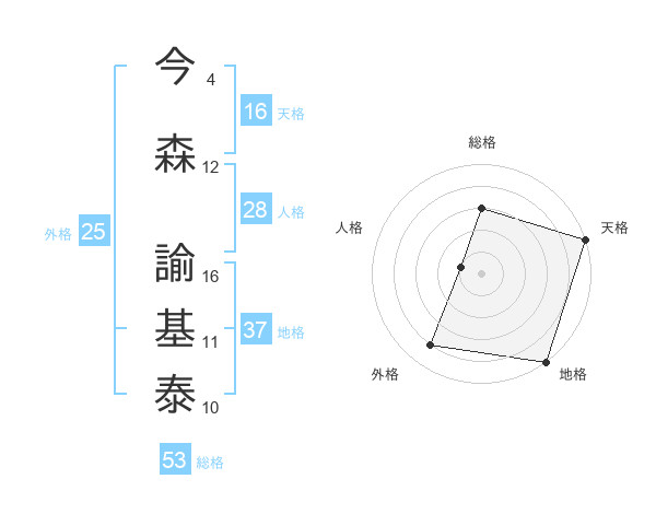 今森 諭基泰さんの天格は16画の5点!