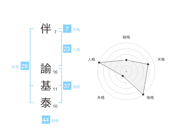 伴 諭基泰さんを姓名の画数から五運を鑑定