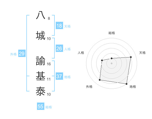 八城 諭基泰さんの総格は55画の1点!
