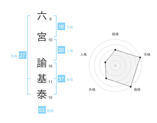 六宮 諭基泰さんを姓名の画数から五運を鑑定