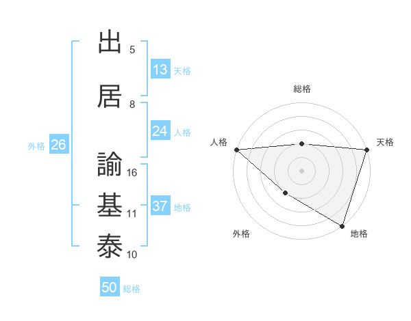 出居 諭基泰さんの天格は13画の5点!