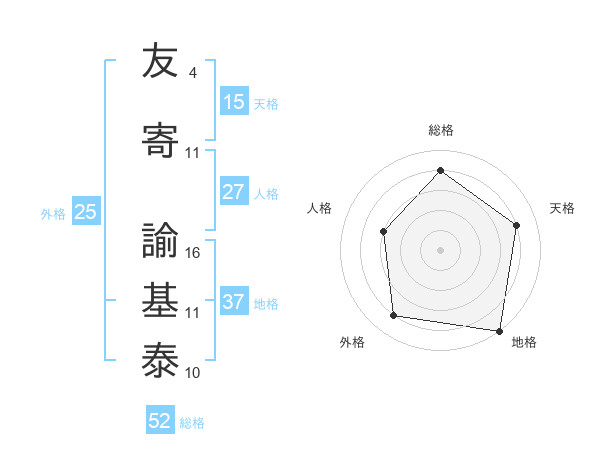 友寄 諭基泰さんを姓名の画数から五運を鑑定