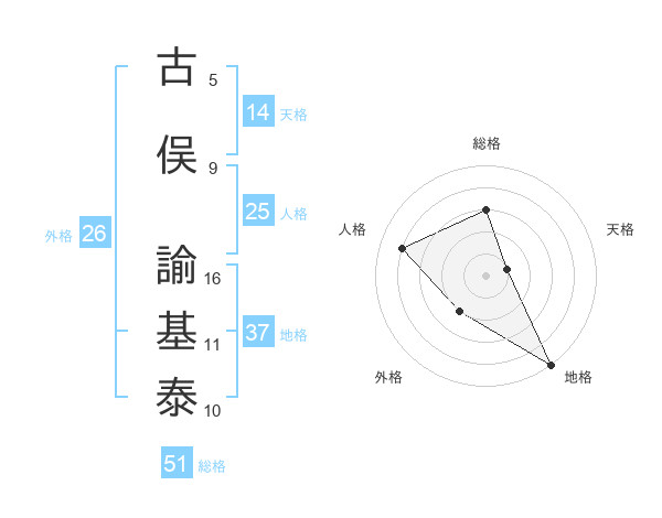 古俣 諭基泰さんを姓名の画数から五運を鑑定