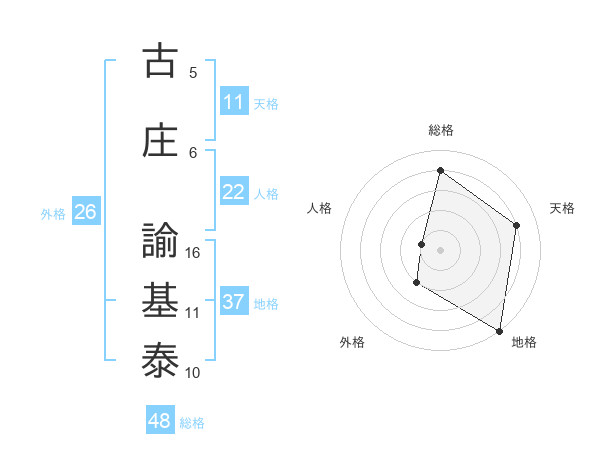 古庄 諭基泰さんの地格は37画の5点!