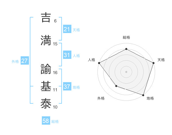 吉満 諭基泰さんの総格は58画の4点!
