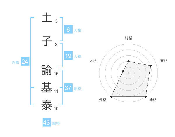 土子 諭基泰さんを姓名の画数から五運を鑑定