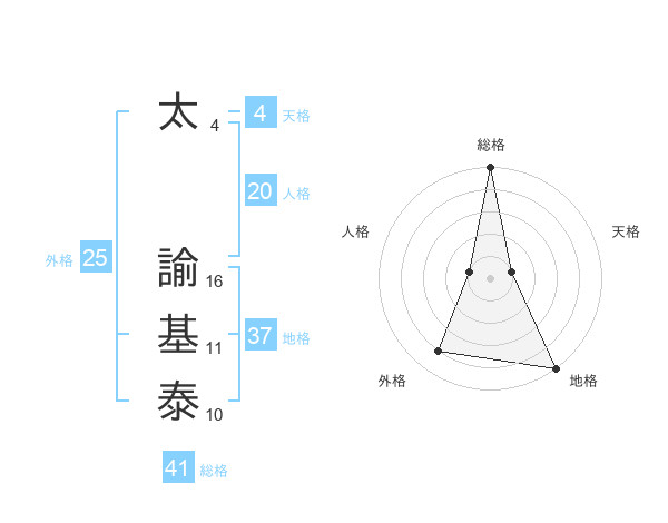 太 諭基泰さんを姓名の画数から五運を鑑定