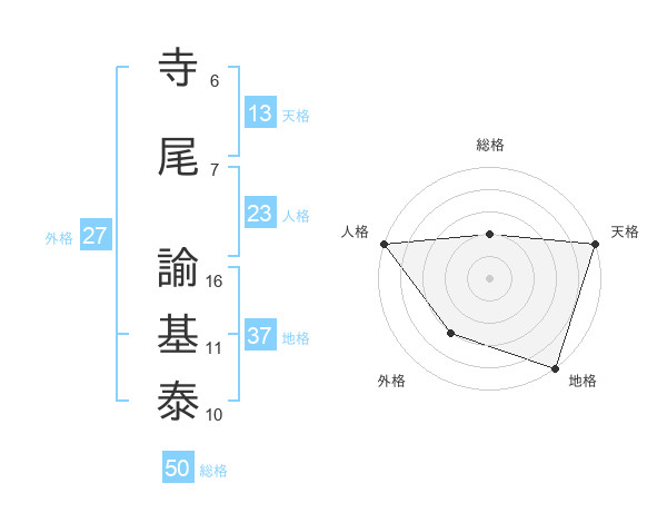 寺尾 諭基泰さんの地格は37画の5点!