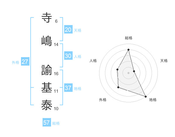 寺嶋 諭基泰さんの総格は57画の4点!
