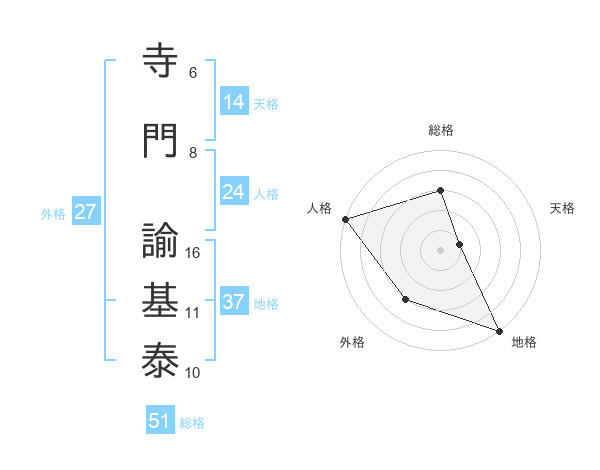 寺門 諭基泰さんを姓名の画数から五運を鑑定