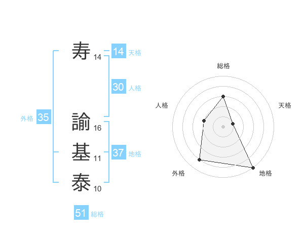 寿 諭基泰さんの総格は51画の3点!