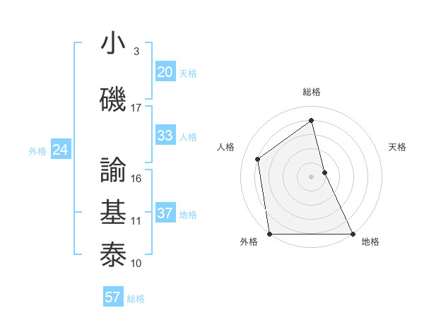 小磯 諭基泰さんの総格は57画の4点!