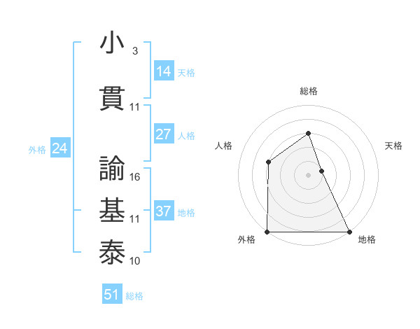 小貫 諭基泰さんの総格は51画の3点!