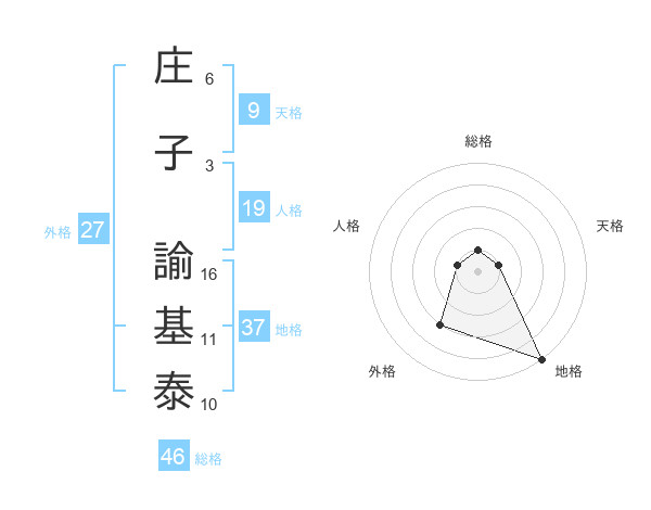 庄子 諭基泰さんの総格は46画の1点