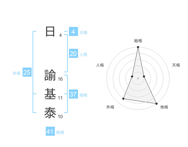 日 諭基泰さんを姓名の画数から五運を鑑定