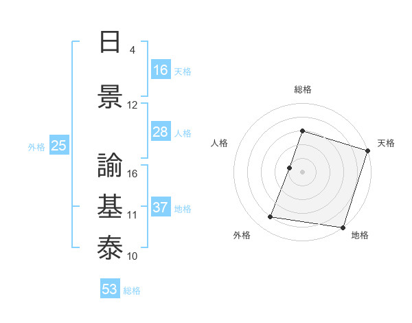日景 諭基泰さんを姓名の画数から五運を鑑定