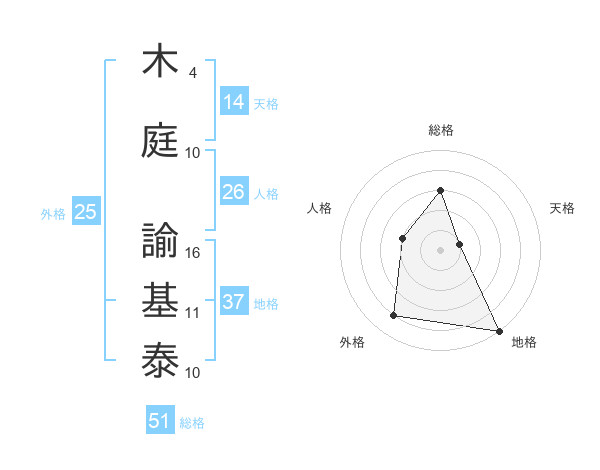 木庭 諭基泰さんを姓名の画数から五運を鑑定