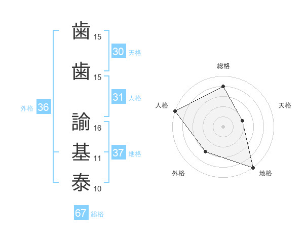 歯歯 諭基泰さんの総格は67画の4点