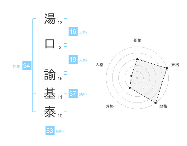 湯口 諭基泰さんを姓名の画数から五運を鑑定
