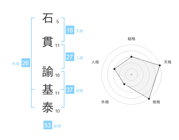 石貫 諭基泰さんの総格は53画の3点