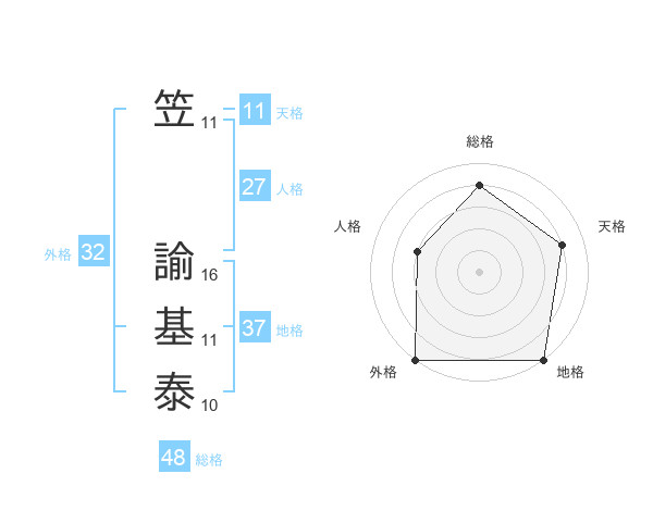 笠 諭基泰さんを姓名の画数から五運を鑑定