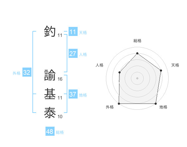釣 諭基泰さんの外格は32画の5点!
