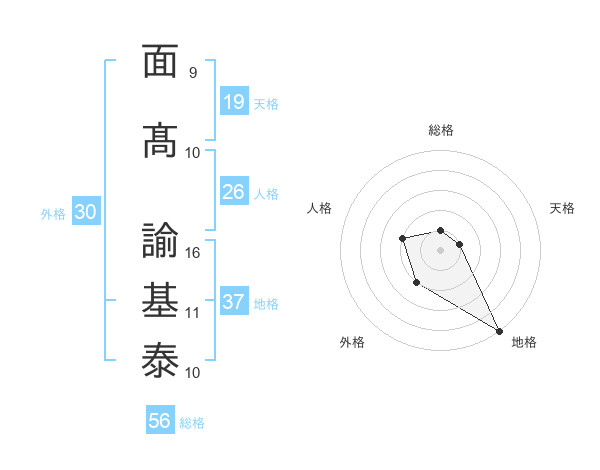 面髙 諭基泰さんを姓名の画数から五運を鑑定