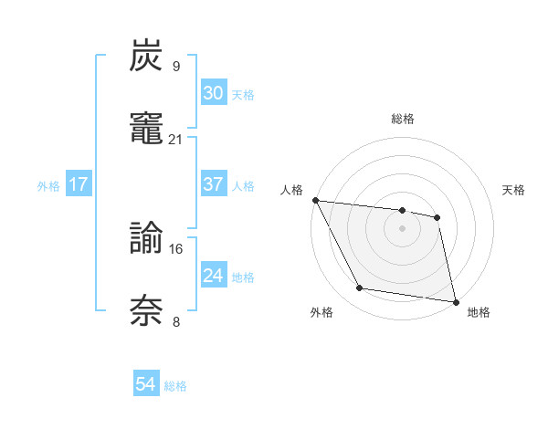 炭竈 諭奈さんの外格は17画の4点!