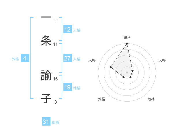 一条 諭子さんの天格は12画の1点!