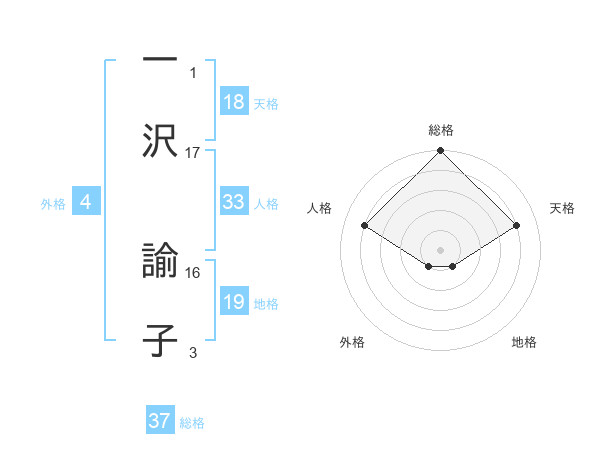 一沢 諭子さんの総格は37画の5点!