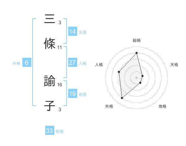 三條 諭子さんの総格は33画の4点!