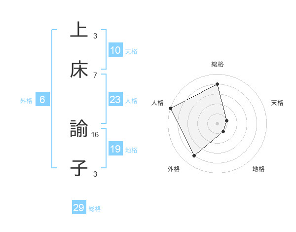上床 諭子さんの総格は29画の4点!