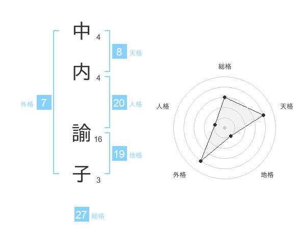 中内 諭子さんの天格は8画の4点!