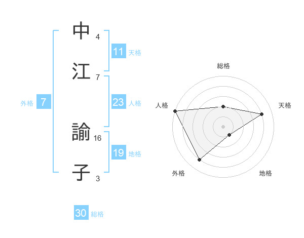 中江 諭子さんの外格は7画の4点!