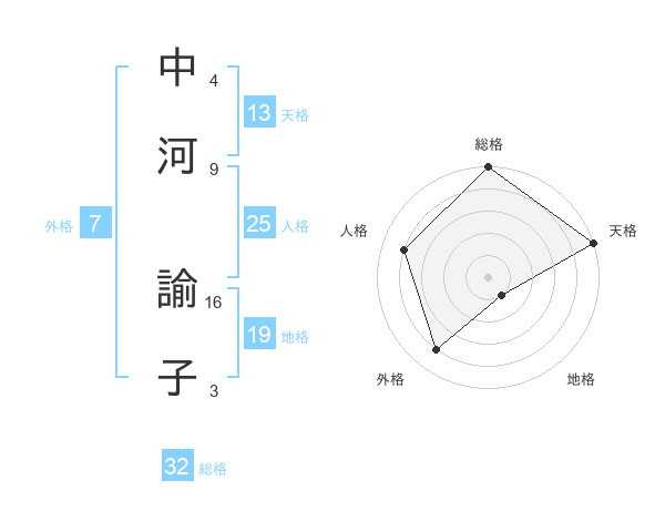 中河 諭子さんの外格は7画の4点!