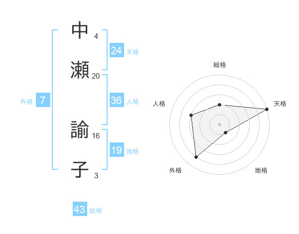 中瀬 諭子さんの天格は24画の5点!
