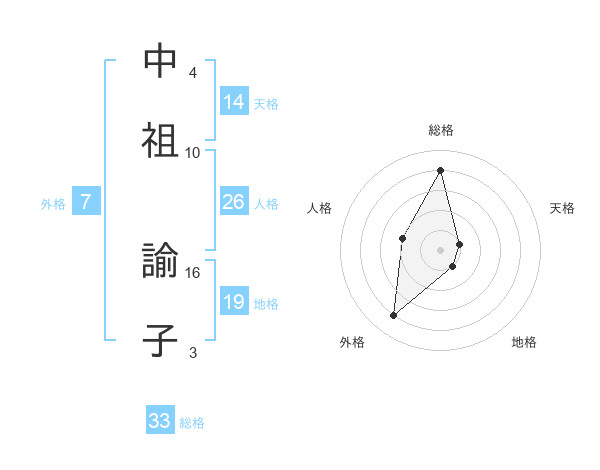 中祖 諭子さんを姓名の画数から五運を鑑定