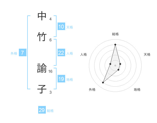 中竹 諭子さんの総格は29画の4点!