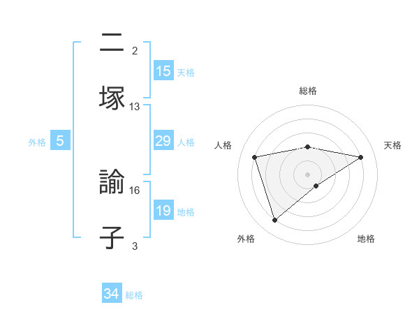 二塚 諭子さんの天格は15画の4点!