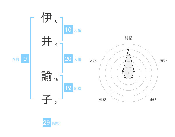 伊井 諭子さんの総格は29画の4点!