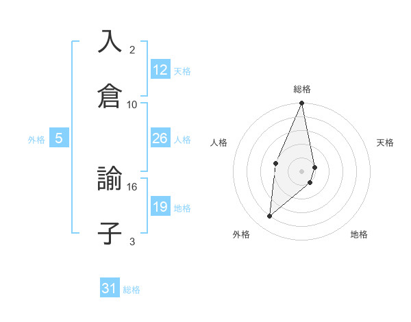 入倉 諭子さんの総格は31画の5点!