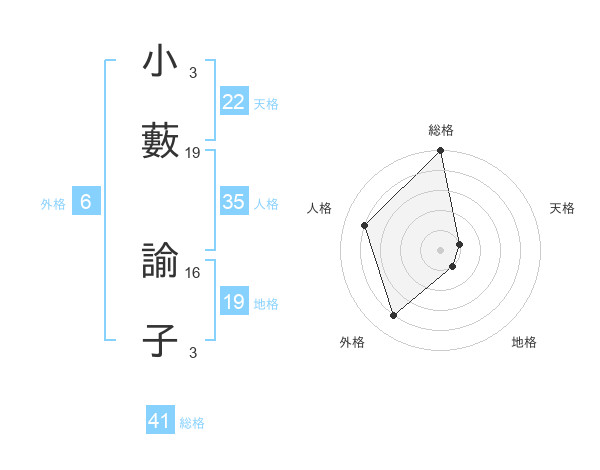 小藪 諭子さんを姓名の画数から五運を鑑定