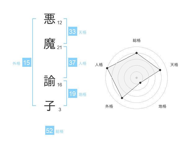 悪魔 諭子さんの総格は52画の4点!